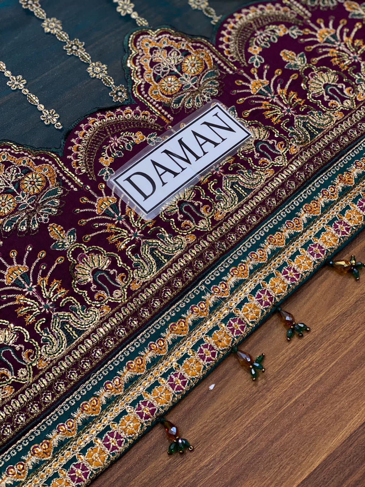 BAROQUE ORGANZA DRESS SHAMOOZ SILK TROUSER NECK Embroidered Bunch With Sequence & ADDA Work